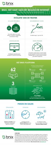 De toename in totaal volume is vooral te danken aan grote upgrades die een aantal participanten hebben doorgevoerd. Het gaat om internet service providers als Proximus, VOO en Belnet, hostingproviders als OVH en content providers als Facebook. Jan Torreele, directeur van Belnet: “De vraag naar hogere aansluitsnelheden neemt sterk toe. Daarom zijn we in 2017 gestart met het aanbieden van 100G-poorten op het BNIX-platform”. In totaal telt BNIX momenteel negen actieve 100G-aansluitingen, aangevuld met 48 10 Gbit/s-, 27 1 Gbit/s- en elf 100 Mbit/s-aansluitingen.