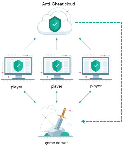 In opdracht van een toernooidirectie kunnen online wedstrijddeelnemers de Anti-Cheat client zelf installeren. Deze cloudoplossing wordt dan via het bewuste eSports platform verspreid. Na installatie verzamelt de applicatie informatie over het spelproces. Deze gegevens worden naar de Kaspersky Anti-Cheat cloud gestuurd waarop analyse van verdachte gebeurtenissen volgt. Via een webinterface ontvangt de toernooischeidsrechter realtime rapporten over mogelijke valsspeelpraktijken. De Kaspersky Anti-Cheat oplossing levert technisch bewijs van bedrog zonder betrokkenheid van spelers. Toernooi-organisatoren en scheidsrechters beslissen uiteindelijk zelf of er al dan niet actie nodig is naar mogelijke valsspelers. Daarmee wordt de online wedstrijd niet onnodig belast.