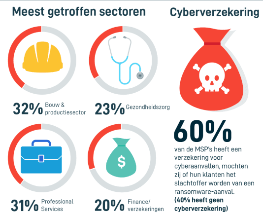 MSP’s zijn zelf ook doelwit van ransomware-aanvallen, gaf het Department of Homeland Security vorig jaar al aan in een waarschuwing voor MSP’s. Vier van de vijf MSP’s heeft aangegeven dat zij steeds vaker gericht worden aangevallen. Slechts de helft van alle MSP’s beschikt echter over externe expertise in het geval van een grootschalige aanval op hun eigen bedrijf of hun klanten. 60 procent van de MSP’s heeft wel een cyber-aansprakelijkheidsverzekering om de kosten van een ransomware-aanval te compenseren.