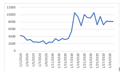 Het aantal kliks op de phishingversie van de PeopleMedia-website gedetecteerd door producten van Kaspersky.