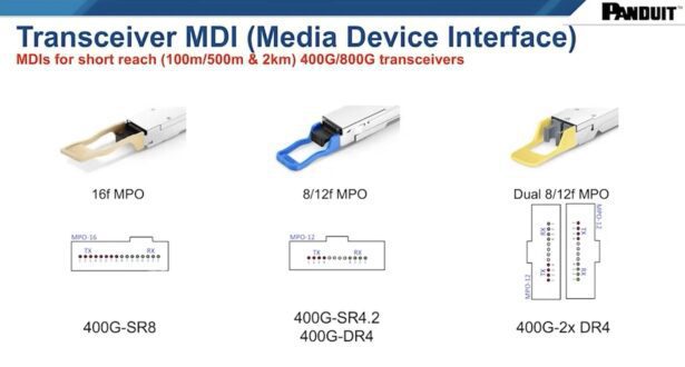 Een interessante verschuiving in datacenterarchitectuur is de beweging van Top of Rack (ToR) naar Middle of Row (MoR) configuraties. Dit is mogelijk geworden door de introductie van parallelle optische transceivers en Base-8 bekabeling.