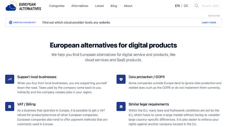 In de discussie over Europese digitale soevereiniteit lijken veel bedrijven en overheden te vergeten dat er wel degelijk veel cloud- en andere alternatieven zijn voor de producten en diensten van de bekende techbedrijven. Een nieuwe website brengt een aantal van deze alternatieven bij elkaar. European Alternatives is een project van Constantin Graf dat Europese alternatieven voor digitale diensten en producten, zoals cloud services en SaaS-producten, verzamelt en analyseert.