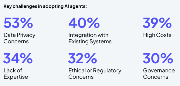 - Wat zijn de bottlenecks? De drie grootste belemmeringen zijn dataprivacy (53%), integratie met legacy-systemen (40%) en hoge implementatiekosten (39%). Deze knelpunten hebben allemaal een gemeenschappelijke oorzaak: de behoefte aan robuust, uniform databeheer en governance.