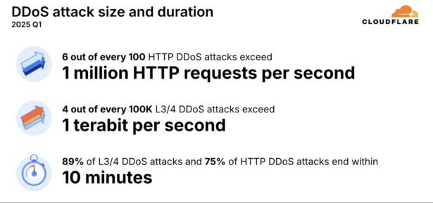 Cloudflare heeft haar rapport uitgebracht over de wereldwijde DDoS-aanvallen in het eerste kwartaal van 2025. De belangrijkste bevindingen zijn: