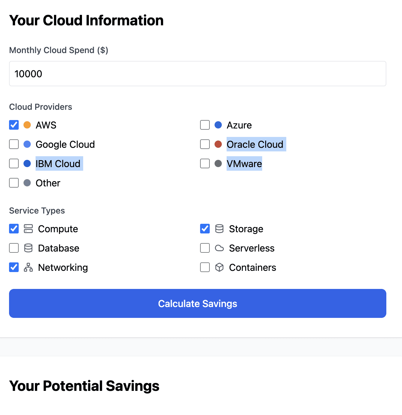 Met emma’s calculator krijgt u direct inzicht in uw potentiële besparingen. Vergelijk resultaten met andere cloudproviders en ontdek wat u kunt besparen.