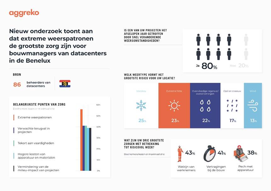 De bouwers van datacenters in de Benelux maken zich steeds meer zorgen over extreme weerpatronen, zo blijkt uit een grote studie van Aggreko.