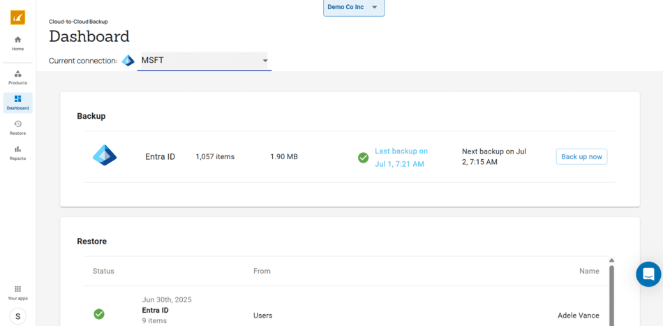 De cloudgebaseerde Software-as-a-Service (SaaS)-oplossing is gemaakt met het oog op eenvoud en snelheid – er is geen installatie, configuratie of handmatige patching nodig. Klanten verbinden hun Microsoft 365-tenant en beginnen binnen enkele minuten met het maken van back-ups van Entra ID-data. Geavanceerde zoekfuncties, real-time monitoring, gedetailleerde auditlogs en vijf niveaus van role-based access control (RBAC) bieden de zichtbaarheid en controle die nodig zijn om identiteitsbeveiliging efficiënt en veilig te beheren.