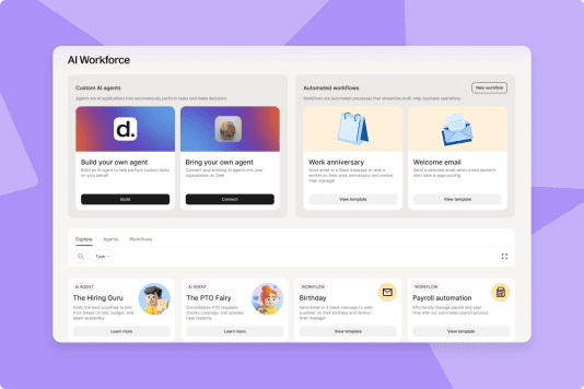 Deel, een alles-in-één payroll- en HR-platform, intro­du­ceert AI Workforce. Dit is een geïn­te­greerde hub waarmee bedrijven AI-agents en workflows kunnen lanceren, beheren en creëren binnen het Deel-platform. De oplossing maakt het eenvoudig om AI-agents toe te voegen aan bestaande werk­pro­cessen, waarbij gebruik wordt gemaakt van gegevens en processen die al in het Deel HR- en payroll-systeem aanwezig zijn.