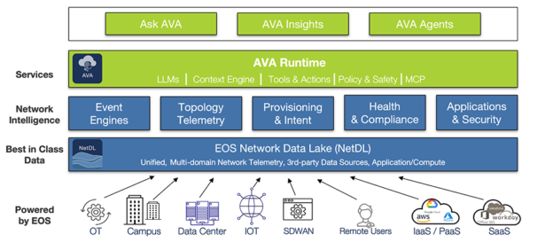 AVA biedt organisaties een uniform AI-framework, als basis voor het creëren van autonome, zelfsturende netwerken. Dit zorgt voor operationele eenvoud en meer proactieve intelligentie in AIOps, waardoor de wijze waarop campusnetwerken worden beheerd fundamenteel verandert. Aangedreven door Arista EOS, biedt AVA de open programmeerbare interface die nodig is voor AI-agenten om met het netwerk te communiceren, terwijl NetDL fungeert als centrale, uitgebreide opslag voor alle netwerk- en gerelateerde gegevens, inclusief die van externe partners.